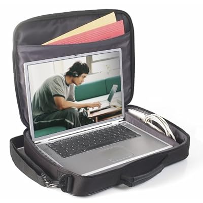 I ordered this carrying case for my 17" laptop, and I am delighted with the storage capacity and quality. There is plenty of laptop room with a couple of inches of width to spare, and there's an adjustable padded strap inside to keep it from sliding side to side in the excess area. There is also a velcro strap to hold the laptop firmly in place when it and the case are closed. As others noted, I can zip open the case and use the laptop without taking it out, a feature I was particulary looking for. The case is well padded, and has plenty of pockets that add storage but not bulk. There's not enough space for anything thick like textbooks, but flat notebooks, folders, or small books would easily fit. One of the pockets has loops and pockets to hold pencils, calculators, business cards, and other small items. The bag has a handle and a detachable shoulder strap. This is a great case and the price was far below what I expected to pay for anything like it.